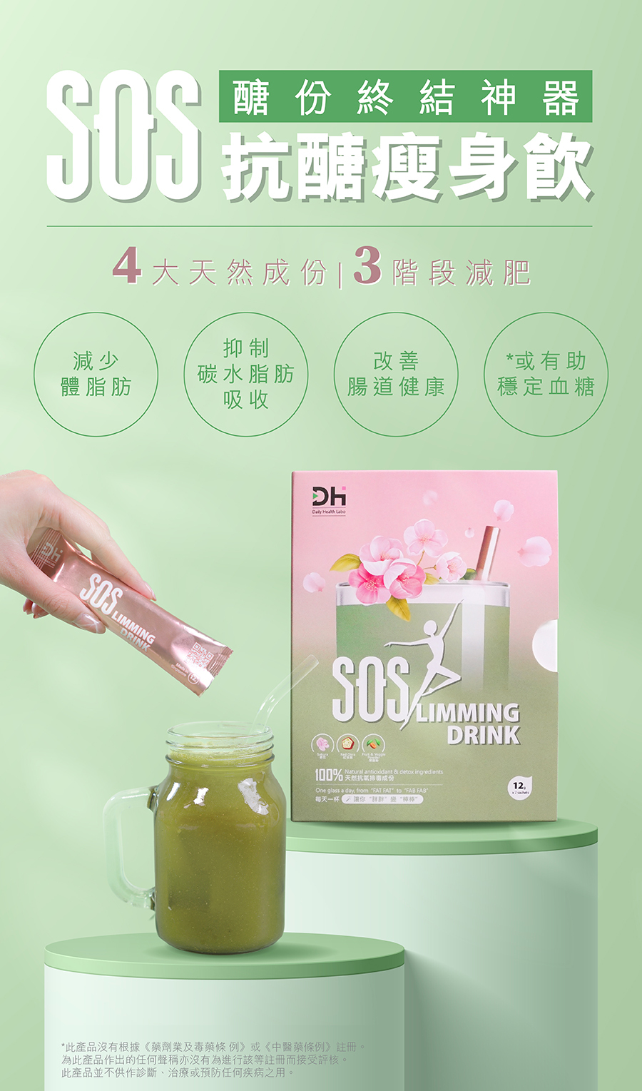 *買3送3優惠為買3盒SOS抗醣瘦身飲,送2盒抗醣瘦身飲及1隻手搖杯。