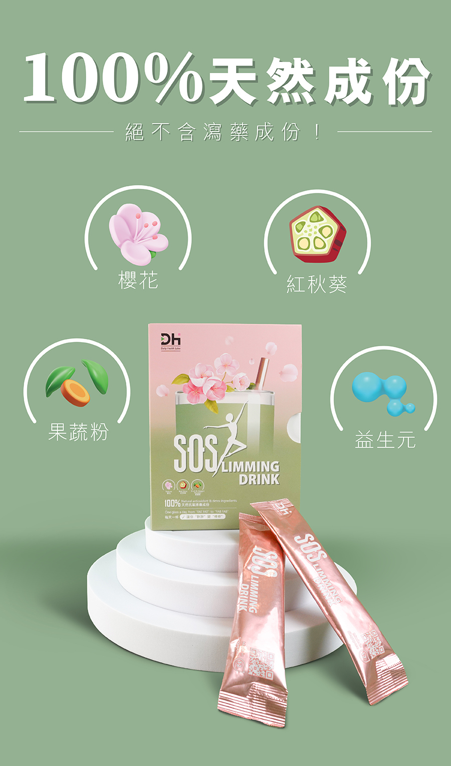 成分:紅秋葵、櫻花萃取物、果蔬粉、益生元